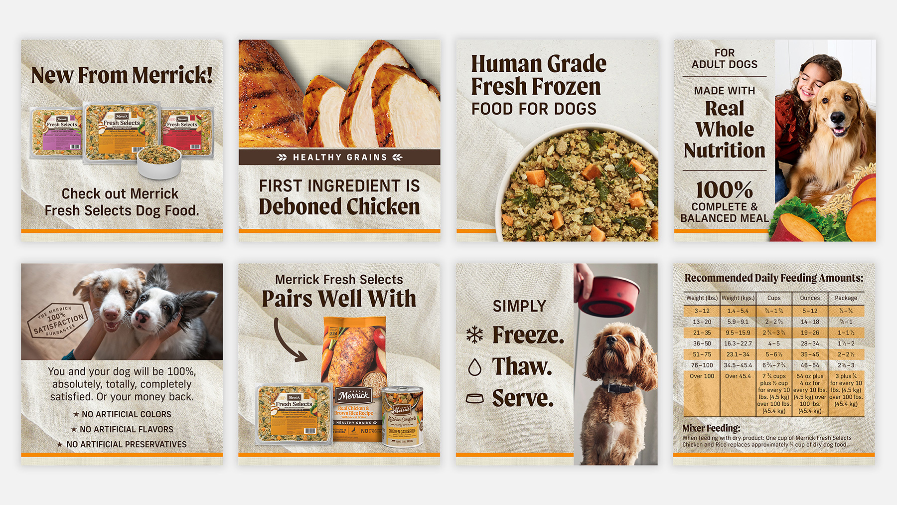 Team Pieper created retailer-optimized content for Merrick Pet Care across major online marketplaces, ensuring products stand out and engage pet parents. Our team developed carousel images, enhanced content, A+ content, product videos, and custom copywriting tailored to retailer requirements. By aligning with platform best practices, we helped improve product visibility, brand consistency, and shopper engagement across pet food retailers.